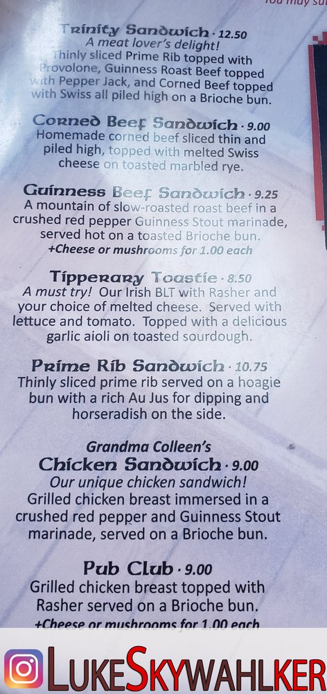 Thin prime rib topped with provolone, Guinness roast beef topped with pepperjack, and corned beef topped with swiss all piled high on a brioche bun.